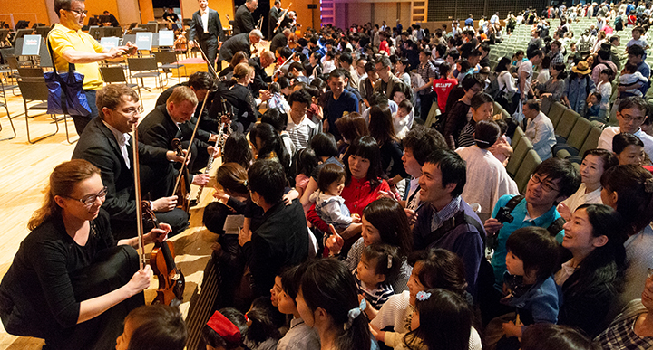 ラ・フォル・ジュルネは、お子さま大歓迎。クラシックコンサートに参加できるのは、小学生以上というのが一般的ですが、ラ・フォル・ジュルネは初開催の2005年から、幼いうちに本物の音楽に触れてほしいという想いで、未就学児のお子さまにも門戸を開いています。どうぞ、お子さま連れでお越しください。
