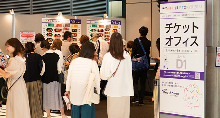会期中は、東京国際フォーラム ホールD1に開設されるチケットオフィスで購入でき、割引やお得なチケットもあります。