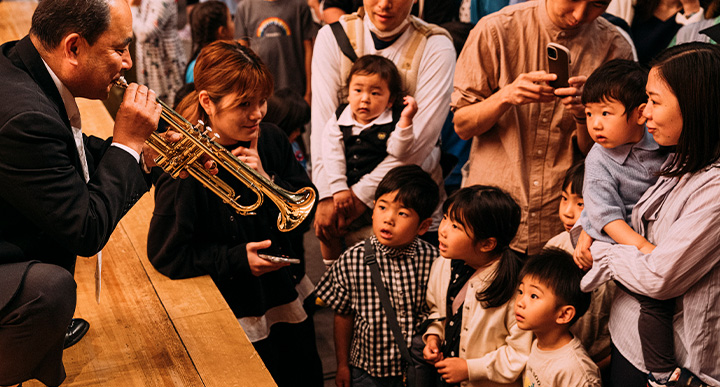 有料公演のほかにも、お子さまが音楽と触れ合える場をご用意しています。「こどもたちの音楽アトリエ」は、参加型のワークショップステージ。音楽祭期間中の「有料コンサート」か「マスタークラス」のチケット(半券も可)があれば無料で参加できます。(ホールEキオスクステージで、音楽祭の3日間、毎日1回実施)