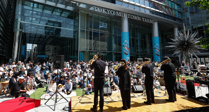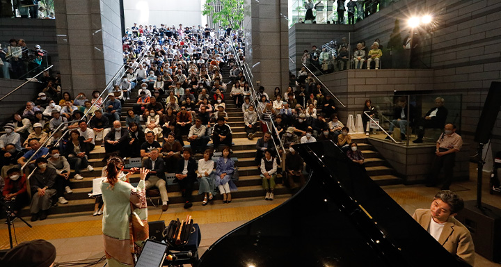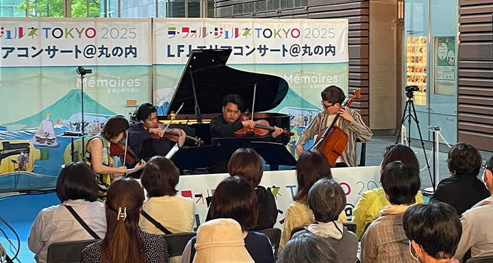 ラ・フォル・ジュルネ期間中は東京国際フォーラムの周辺でも無料でお楽しみいただけるコンサートがたくさん開催されます。お祭りムード溢れる街の雰囲気を感じながら、各会場のコンサートをお楽しみください。