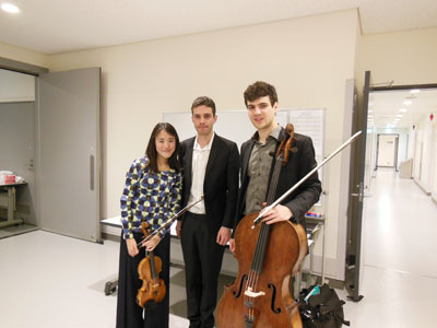 大活躍のお三方、年間どのくらいコンサートをされているのかお伺いすると「え〜どうだったかなあ〜」とヴァイオリンの梁美沙さん。チェロのヴィクトル・ジュリアン=ラファリエールさんによると、「多分(笑)年間で10回を超える」そうです。さすが!